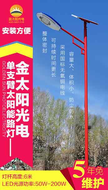 黑龍江金太陽光電自主研發設計的新款太陽能路燈上市,歡迎新老客戶前來淺談業務。